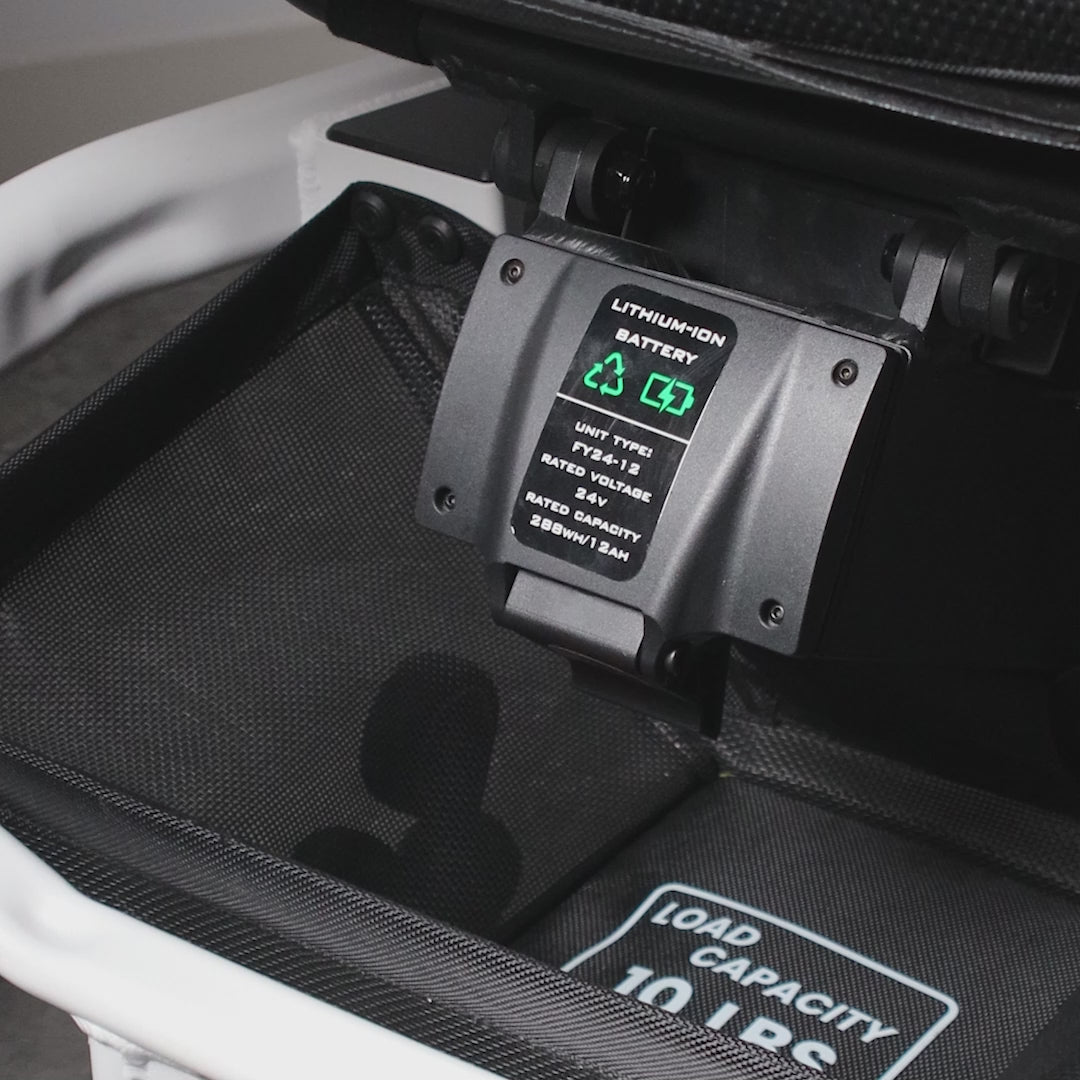 Keep your GRAND TOURER powered with a spare battery. Featuring a 24V 12Ah high-capacity design with support for 800+ charge cycles and a driving range of up to 15.5 mi / 25 km, you can move freely without second-guessing your battery life.